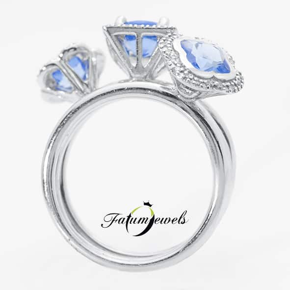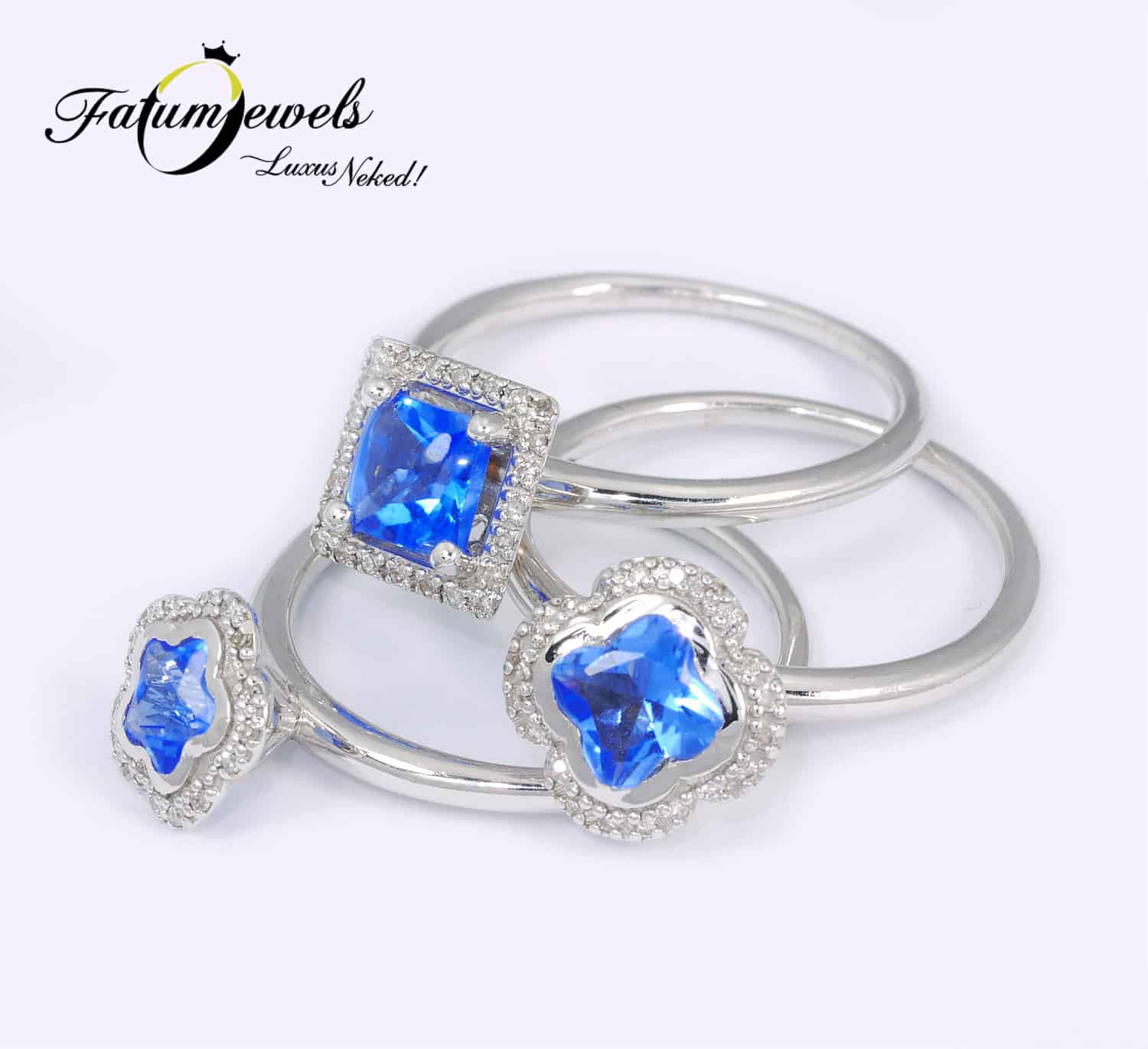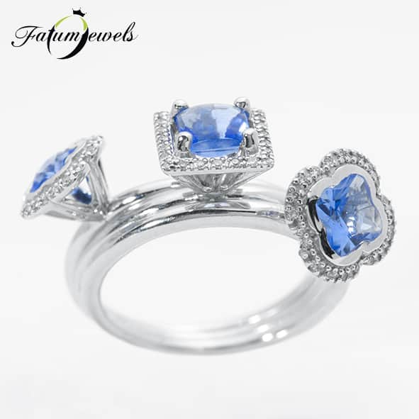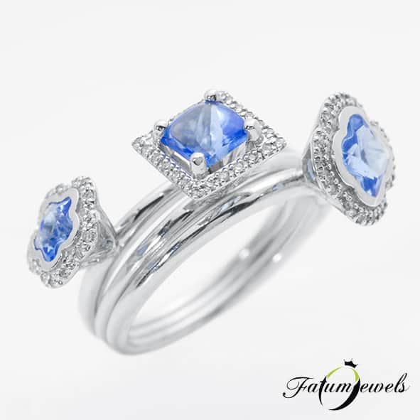 Extra formatervezésű Fatumjewels gyűrű. Vagy inkább gyűrűk? Több szempontból is különleges ez az ékszer. Három gyűrű egyben, a három gyűrű szétszedhető. A drágakő a következő különlegesség, ami a ritka és varázslatos tanzanit. Nem utolsósorban pedig az extra formatervezés sem hagy érintetlenül egyetlen szemlélőt sem. Minden irányból könnyen megtekinthető, látványos egyedi ékszer.