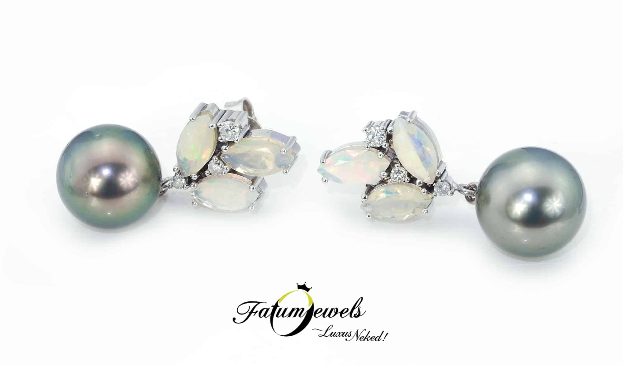 Fehérarany Opál Gyémánt Tahiti Gyöngy Fülbevaló