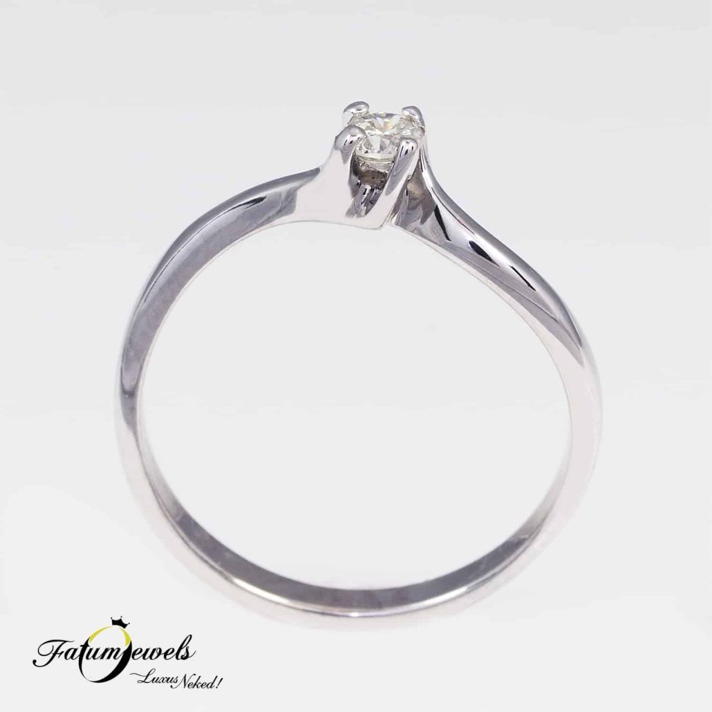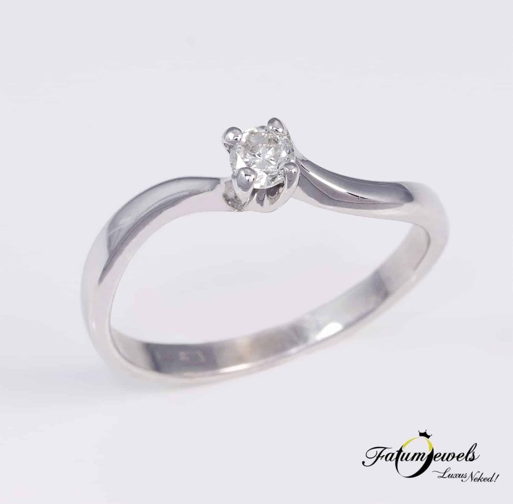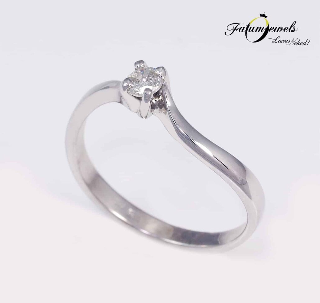 Egy gyönyörű gondolat ihlette ezt a modern vonalvezetésű Fatumjewels gyémánt eljegyzési gyűrűt. A Fatumjewels Galéria tervezői úgy gondolják, hogy a szerelem hullámhosszán nincs lehetetlen. Ezt a romantikus érzést hozták létre egy Fatumjewels ékszer formájában, melynek a végeredménye ez a hullámvonalas eljegyzési gyémántgyűrű egy gyönyörűen szikrázó briliáns gyémánt drágakővel díszítve.