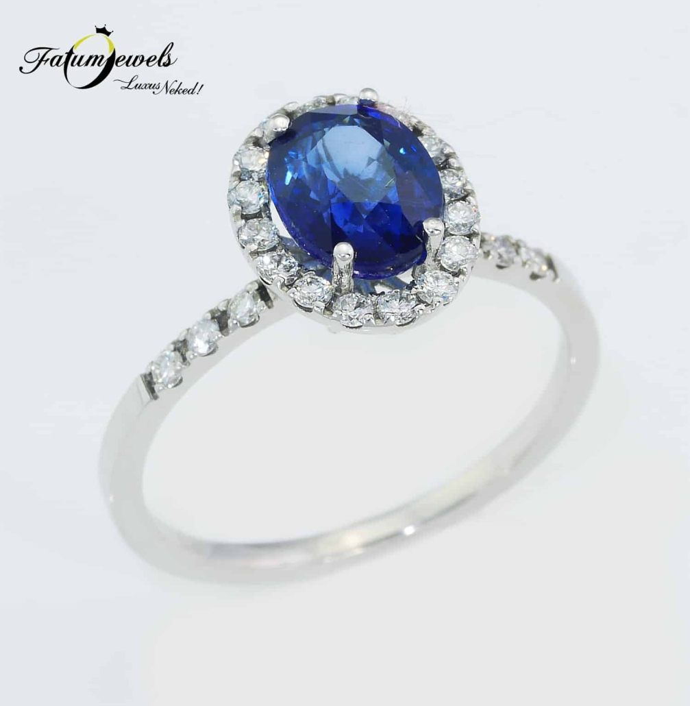 Fehérarany Gyémánt Kék Zafír Gyűrű