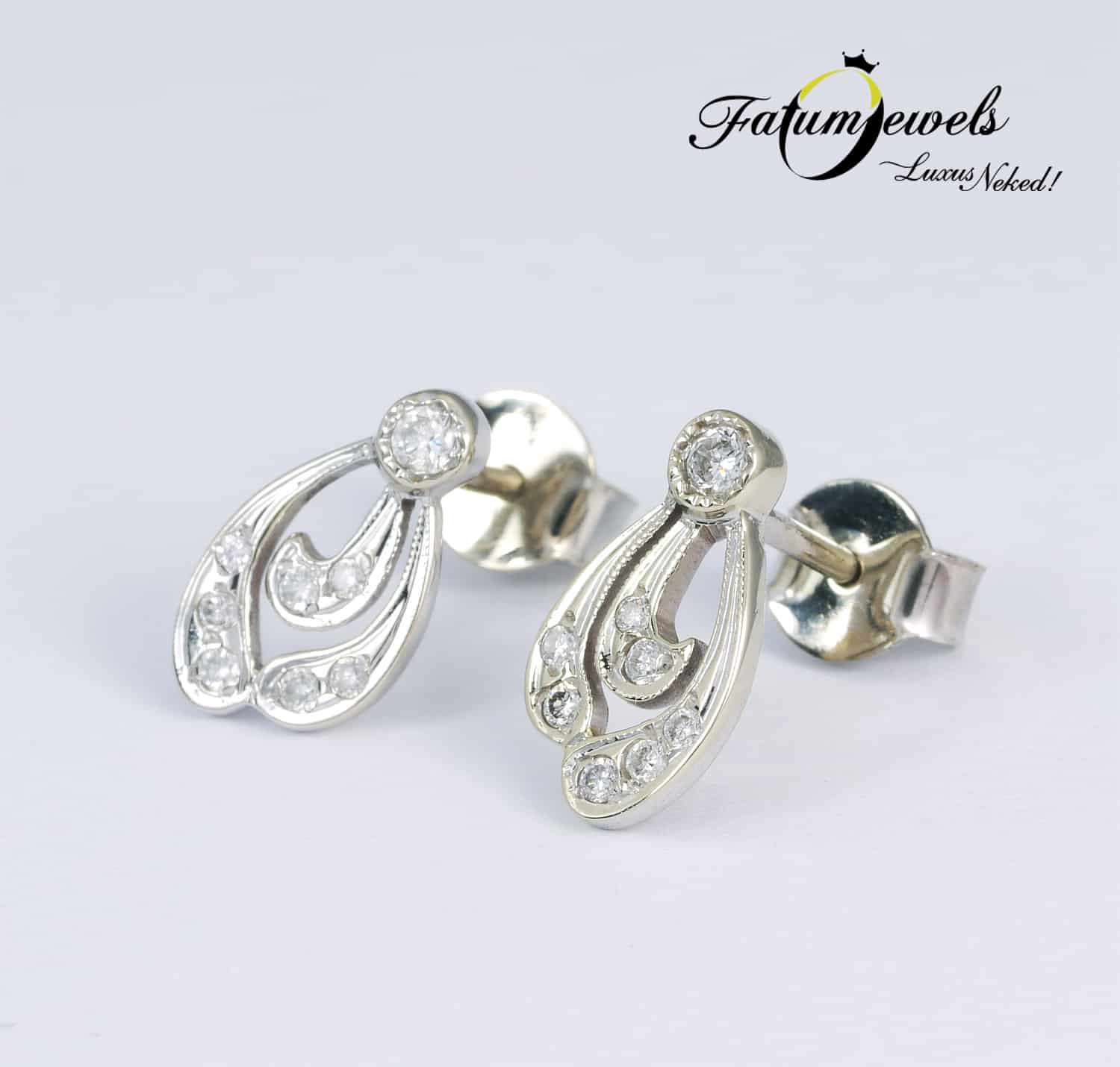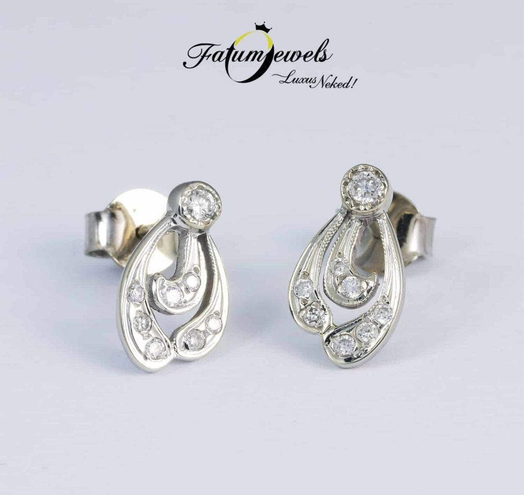 Boldog békeidők hangulatát idézi ez a fehérarany szecessziós gyémánt fülbevaló. A Fatumjewels Galéria formába öntötte azokat a stilizált virágmotívumokat, melyek a XIX. század fordulójára olyannyira jellemzők. A szecesszió minden körülmények között a megszokottból való kiválást, valami új kezdetét jelentette. Ezeket az értékeket örökítette meg a Fatumjewels Galéria egy egyedi fehérarany gyémánt fülbevaló által.