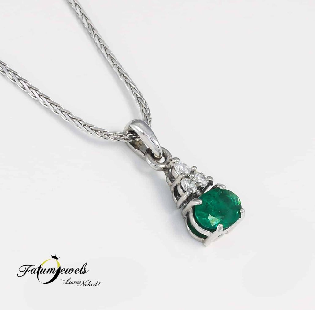 Fehérarany Gyémánt Smaragd Medál Lánccal