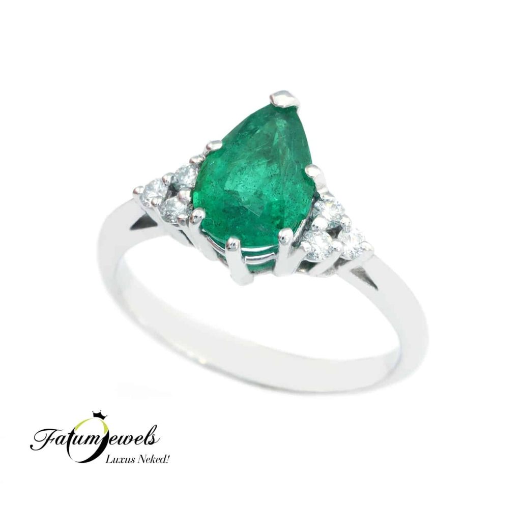 Fehérarany Gyémánt Csepp Smaragd Gyűrű