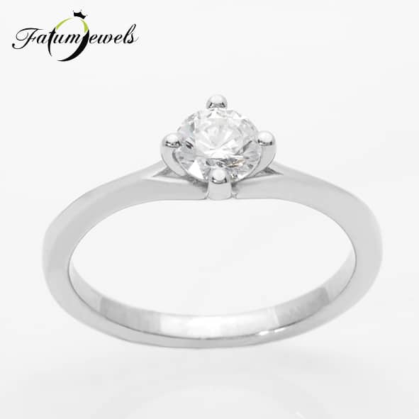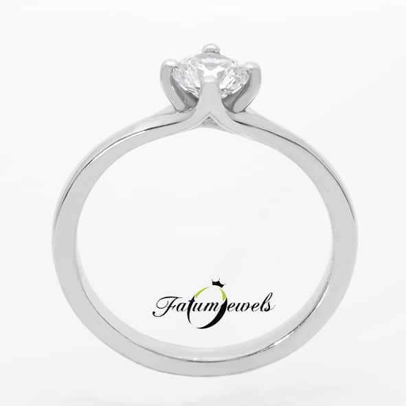 Ez a gyémánt eljegyzési gyűrű a megengedésről szól. Az eljegyzési gyűrű felszínének elülső részén egy keskeny rés található, és éppen ebbe a résbe került elhelyezésre a 0,50 karát briliáns gyémánt. Te beengeded életedbe a valódi értéket úgy, ahogy a fehérarany beengedi önmagába az értékes gyémántot?