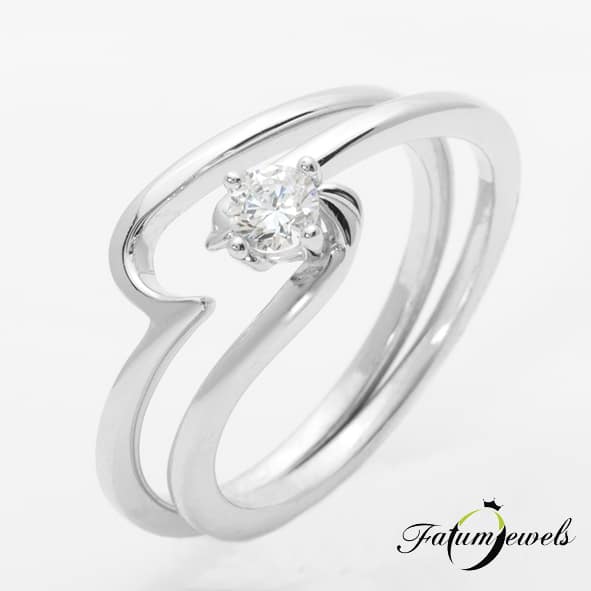 Dupla eljegyzési gyűrű ívelten csúcsos formákkal, briliáns gyémánttal. Ez az eljegyzési gyűrű valóban dupla, melyet kedved szerint viselhetsz. Ha úgy érzed, egy eljegyzési gyűrű nem fejezi ki elég erőteljesen az érzelmeidet, akkor ez a Fatumjewels dupla gyémánt eljegyzési gyűrű éppen neked készült.