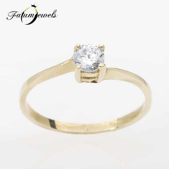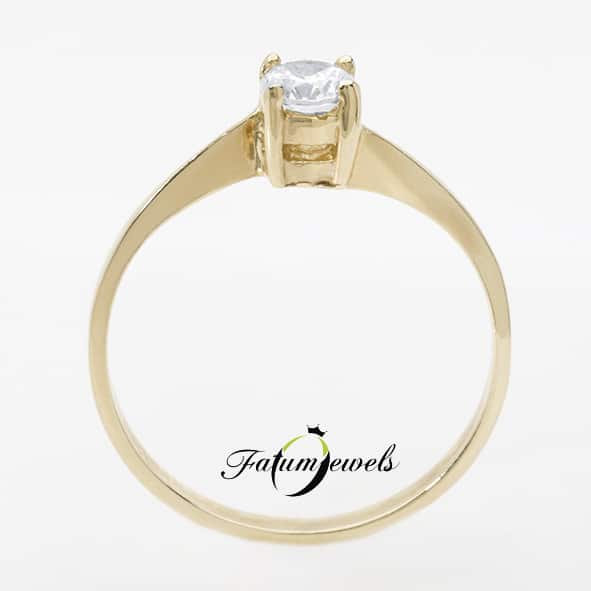 Egymást elkerülő, mégis egy célra törő életutak szimbóluma ez az eljegyzési gyűrű, melynek szélei a gyémántfoglalat szemben lévő sarkaiba futnak bele. A briliáns gyémánt foglalata nemcsak érdekes elrendezésű, de kiemeli az eljegyzési gyűrű mondanivalóját, esztétikáját. Fatumjewels tervezés.
