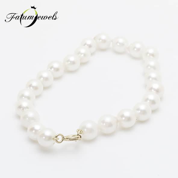 Hagyományos esküvői ékszert keresel? Megtaláltad! Fehér sósvízi gyöngy karkötő igen kedvező áron a Fatumjewels Galéria ajánlásával. A gyöngyök színe, alakja, lüsztere kifogástalan, ahogy az elvárható a tökéletes esküvői megjelenéstől. A kapocs sárga arany, mely egy kis színt visz a fehér ragyogásba. Fatumjewels gyöngy ékszer kedvező áron.