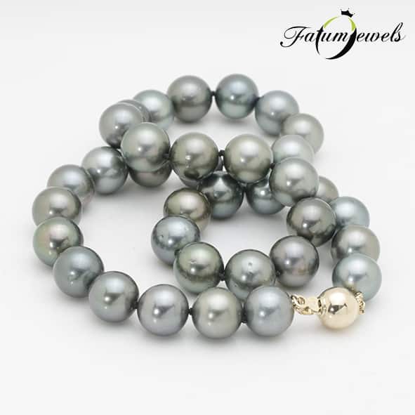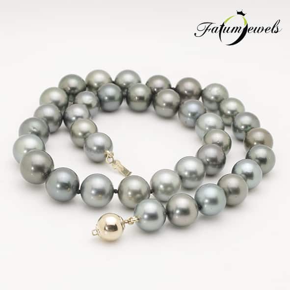 35 darab ezüstös-zöldes Tahiti gyöngyből álló gyöngysor a Fatumjewels Galériában. A Tahiti gyöngysor különlegesség, nemcsak szabályos formája, de különleges színe miatt is. Aki szereti a hagyományos ékszereket, mégis valami igazán extrém csodára vágyik, annak a Tahiti gyöngysor lesz a kedvenc ékszere. Csodás színek, csodás formák, Fatumjewels Tahiti gyöngysor.