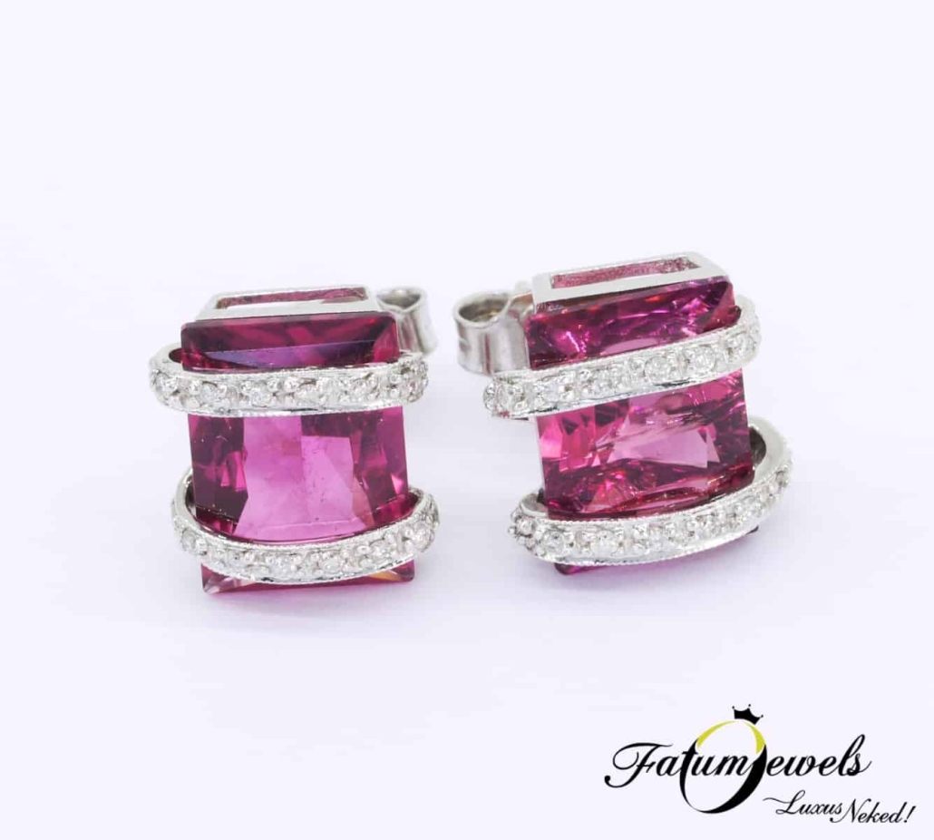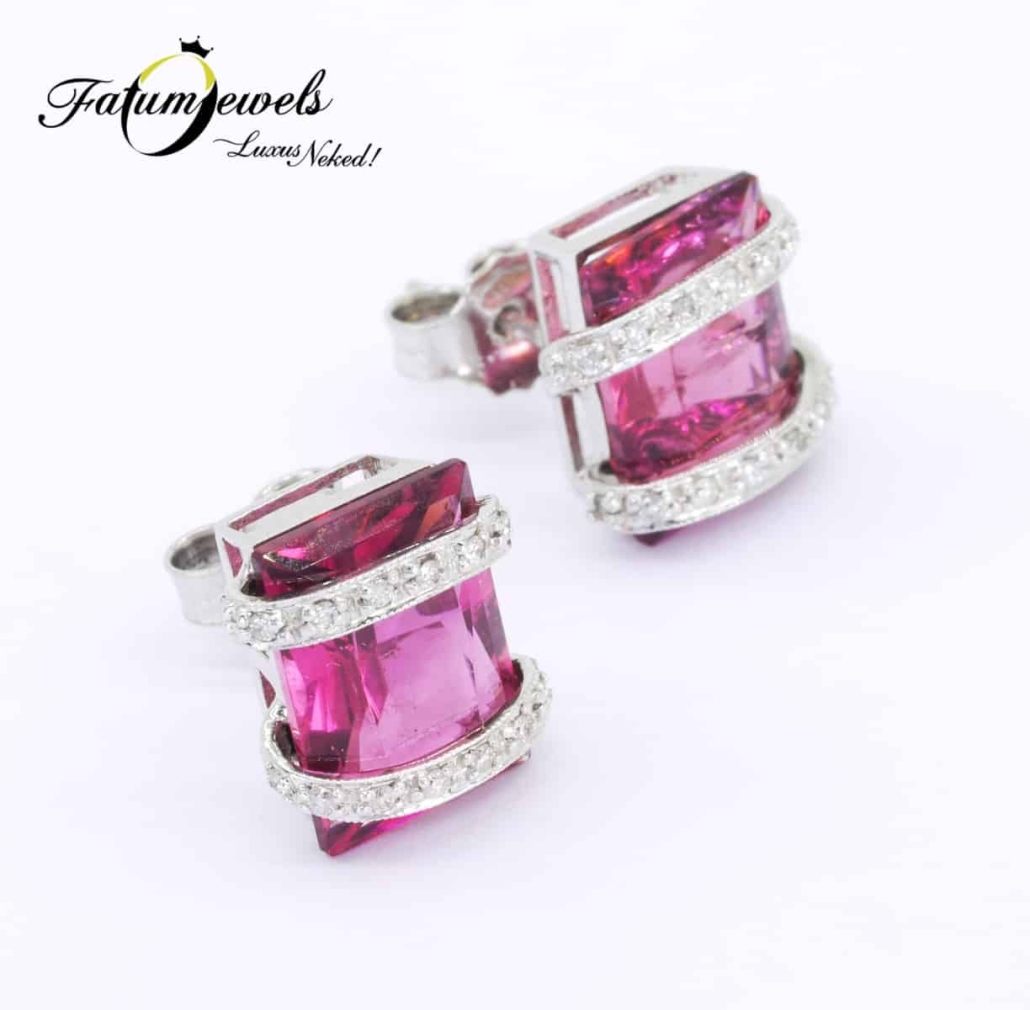 Fehérarany Turmalin Rubellit Gyémánt Fülbevaló