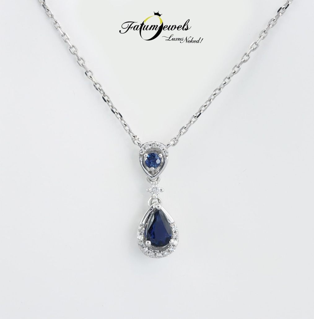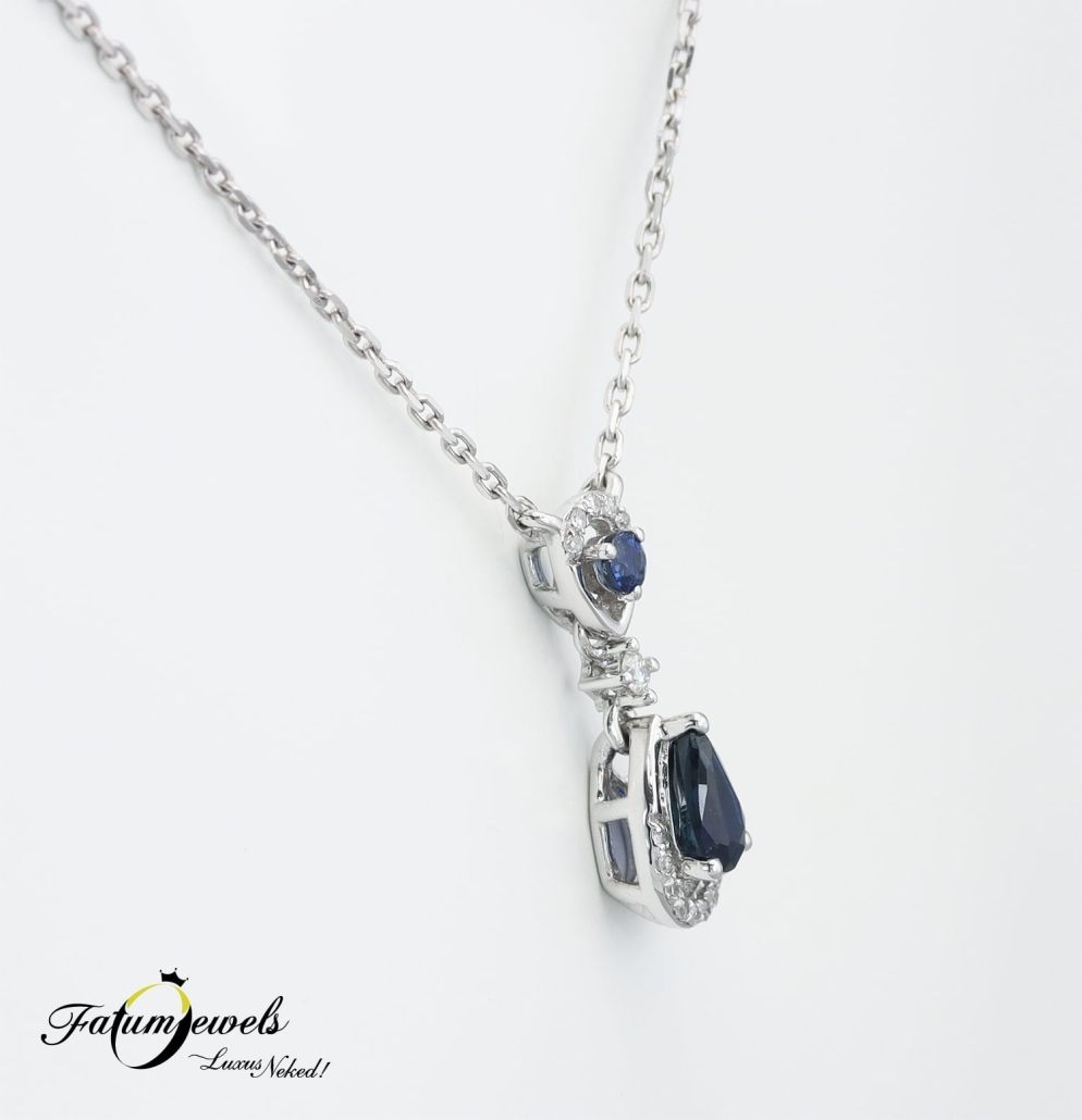 Fehérarany Gyémánt Zafír Medál Lánccal
